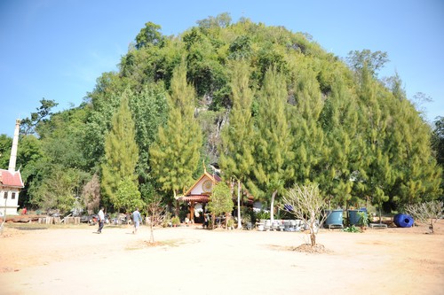 Après cette courte présentation de notre sujet d’étude, cap sur le nord-est de la Thaïlande et la belle province de Chaiyaphum. Le Wat Tum Wiman Nakin est un petit temple de campagne, niché au pied d’une colline calcaire. Comme beaucoup de temples bouddhistes, le Wat Tum Wiman Nakin abrite quelques vitrines remplies de curiosités d’histoire naturelle ou d’artefacts archéologiques rapportés par les fidèles. Ici la spécialité ce sont les coprolithes, avec plusieurs vitrines remplies de ces curieux objets. Les environs contiennent quelques affleurements intéressants de la Formation Huai Hin Lat, une unité géologique qui date de la fin du Trias. L’on y a notamment découvert des restes de poissons et de phytosaures, et les coprolithes sont particulièrement abondants dans ces dépôts.
