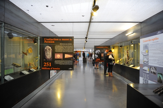 Ammonites, bélemnites, reptiles volants, reptiles marins, reptiles mammaliens, crocodiles, tortues, insectes, ours des cavernes, etc. illustrent toute l'histoire de la Terre depuis 4,5 milliards d'années, de l'apparition des premiers êtres vivants aux mammifères de l'ère Quaternaire.